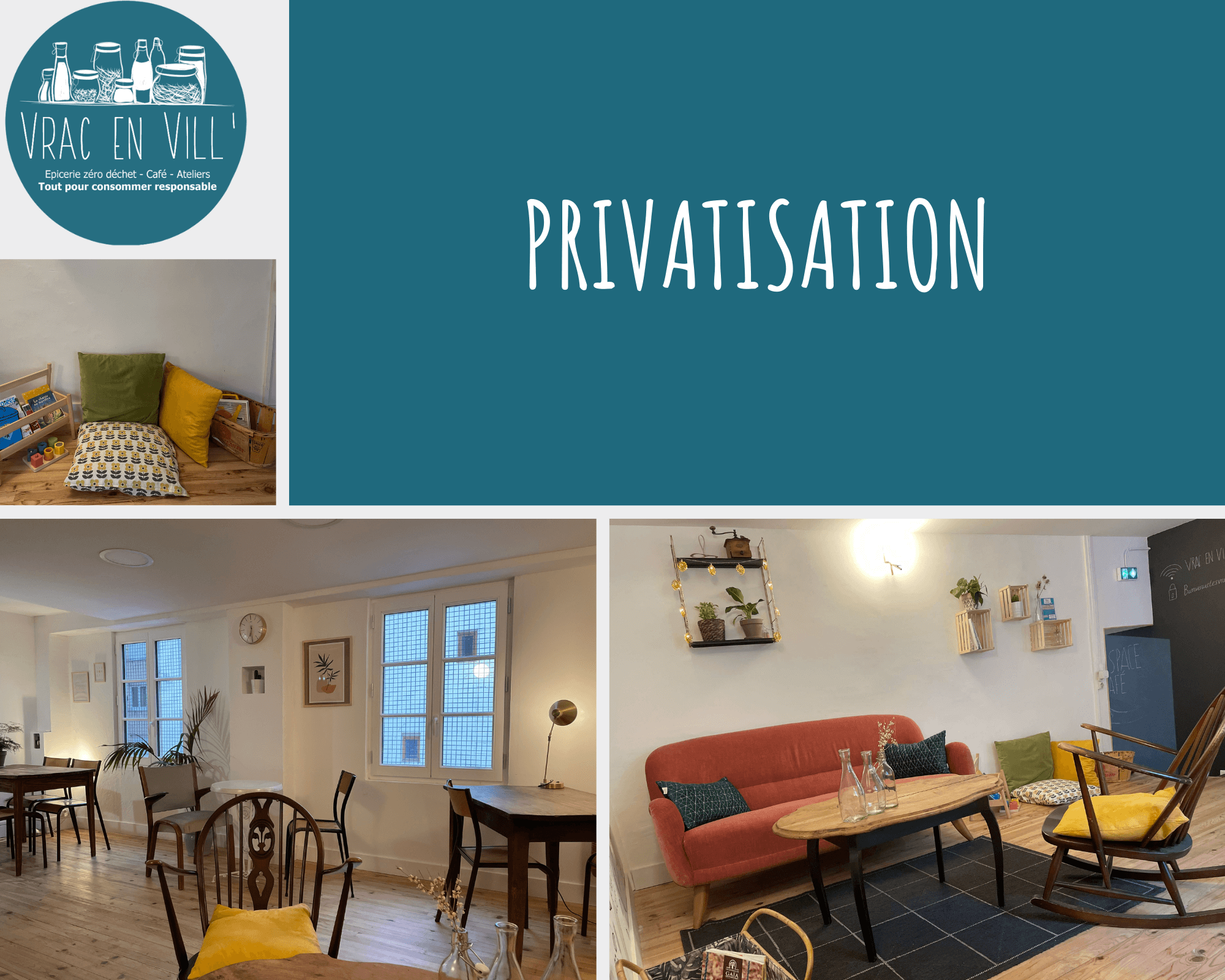 Entreprise ? Développer votre politique de RSE en faisant découvrir à vos collaborateurs un lieu de vie ou chacun est accompagné dans sa transition zéro déchet. Ainsi vous soutiendrez des producteurs engagés, des artisans locaux, et nous, Vrac en Vill’ !